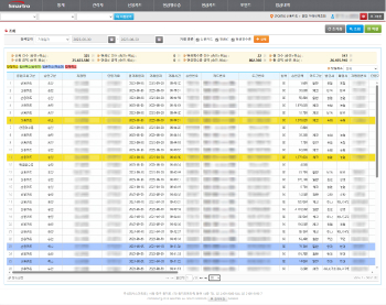 입금 정산내역 화면 입금 데이터화 통장 비교,