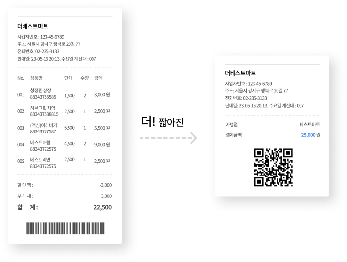 접어도 접어도 긴 영수증은 이제 그만, 간단하고편리한 간편 영수증을 이용해보세요.