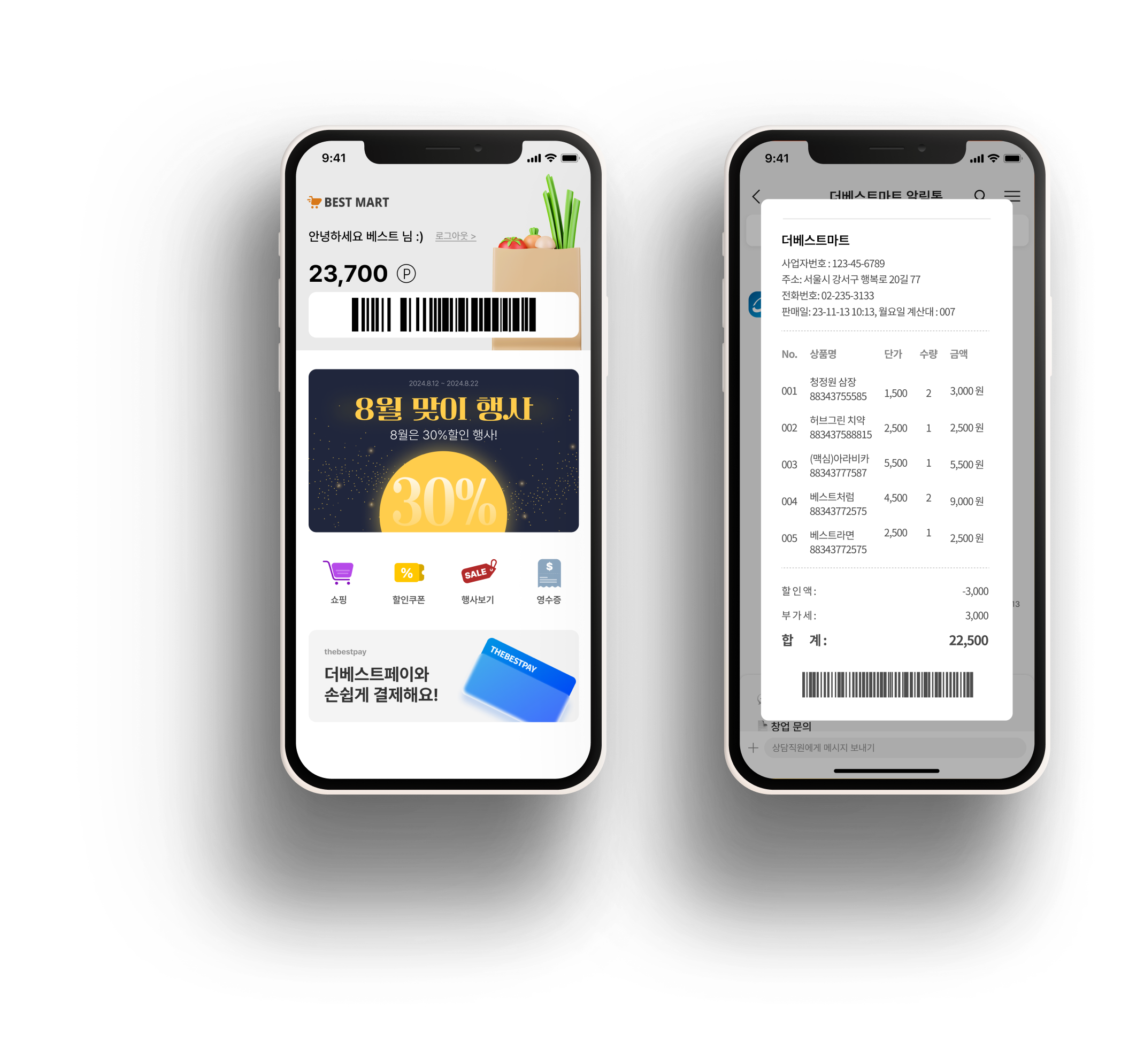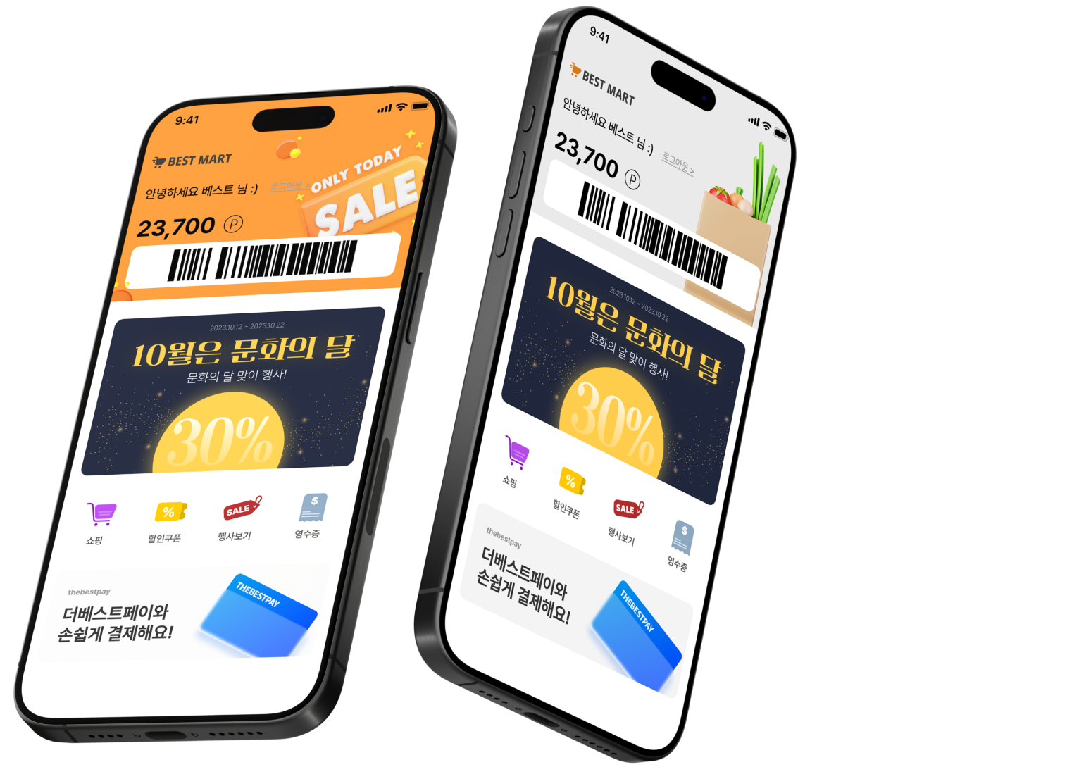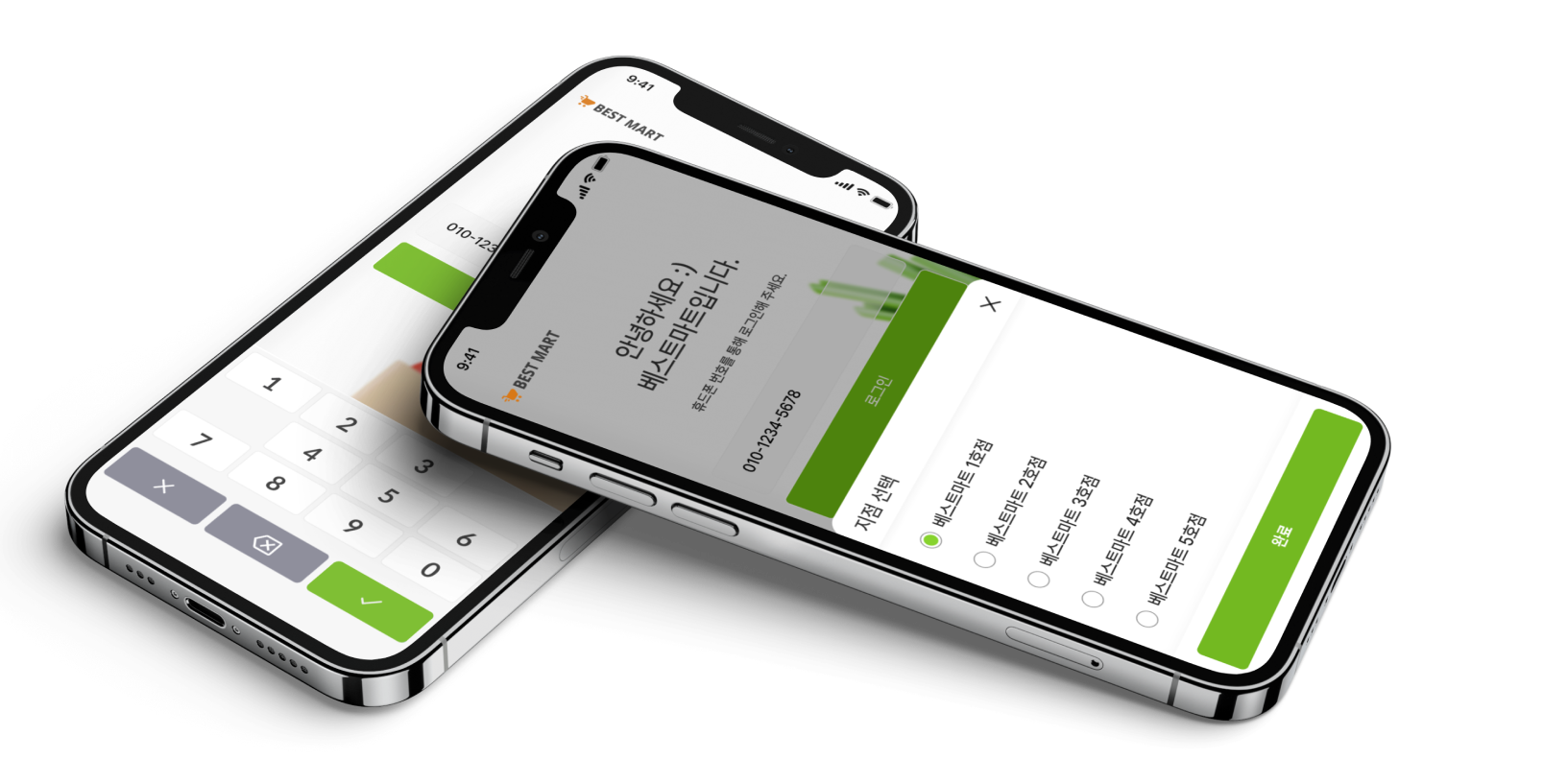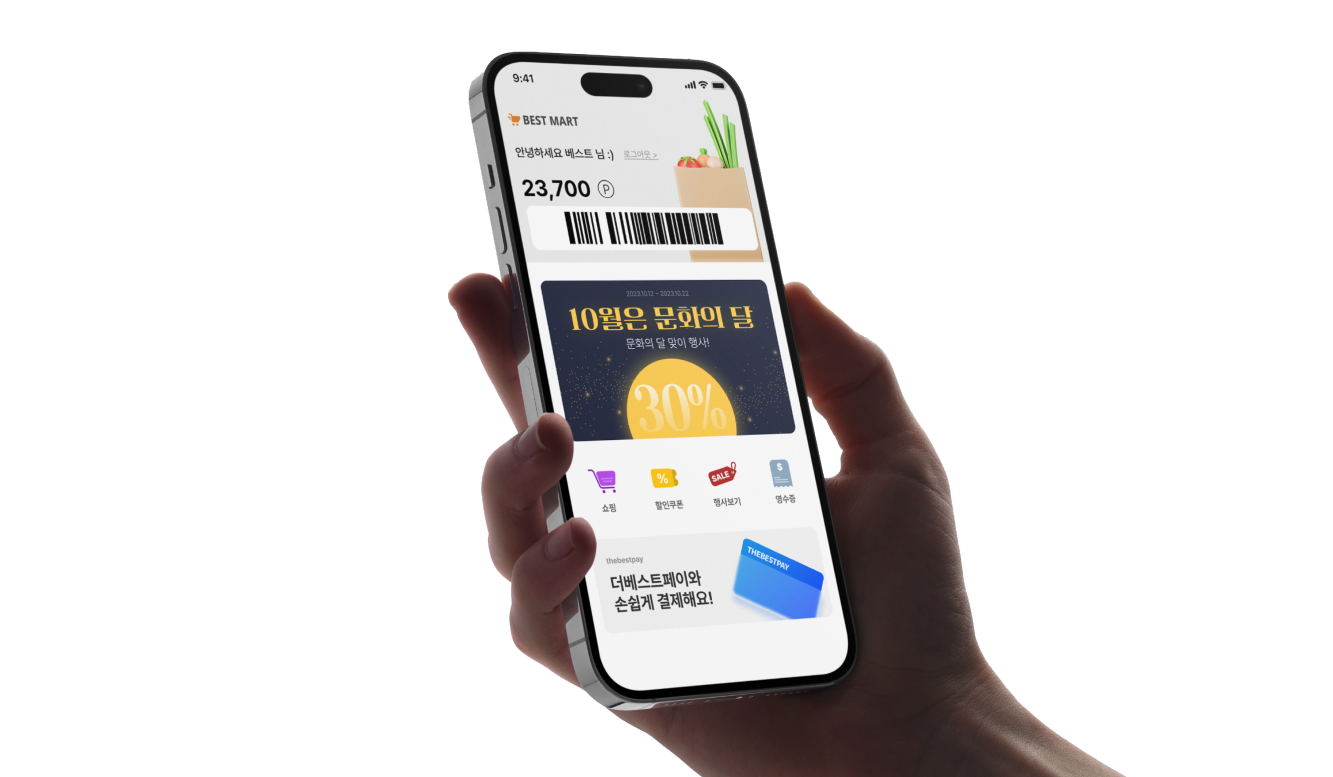 고객에게 쇼핑/쿠폰/영수증/전단지 한 번에 진행할 수 있는 서비스입니다.