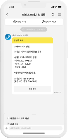 환자가 병원을 이용하면 환자는 카카오톡의 알림톡을 통해 안내 메시지를 받게 되며,