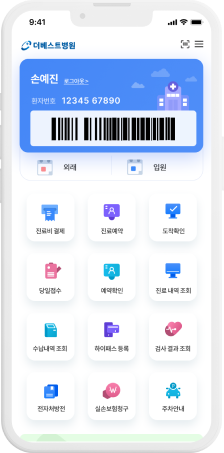 모바일로 진료 내역, 수납내역, 검사 결과 조회가 가능 합니다.