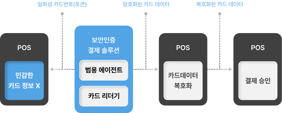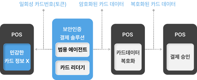 “POS의 보안인증을 대체”하여 민감한 신용카드 정보 없이 모든 카드 업무를