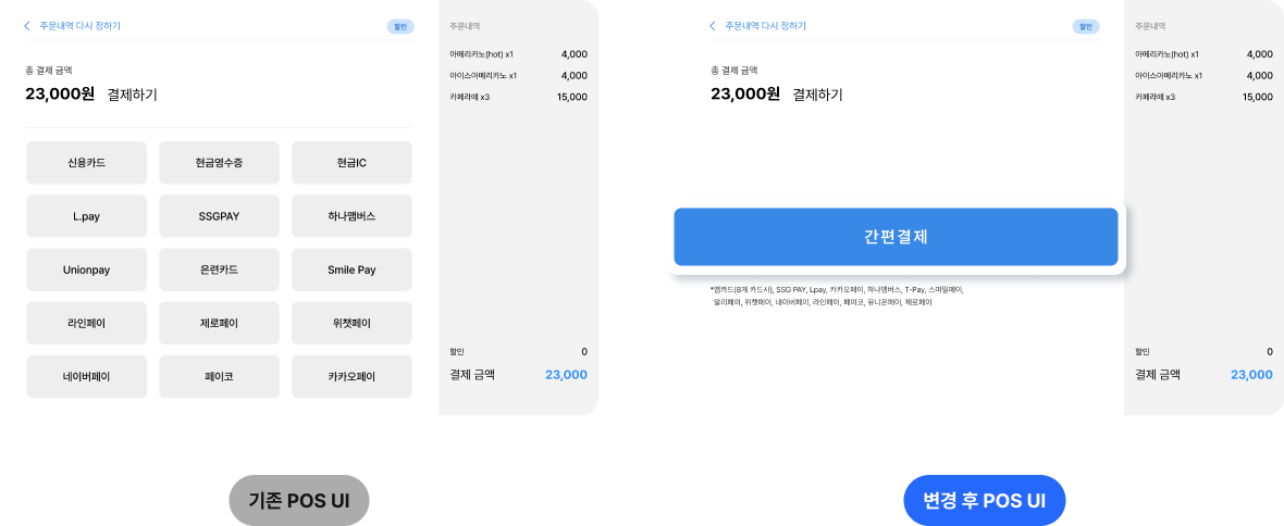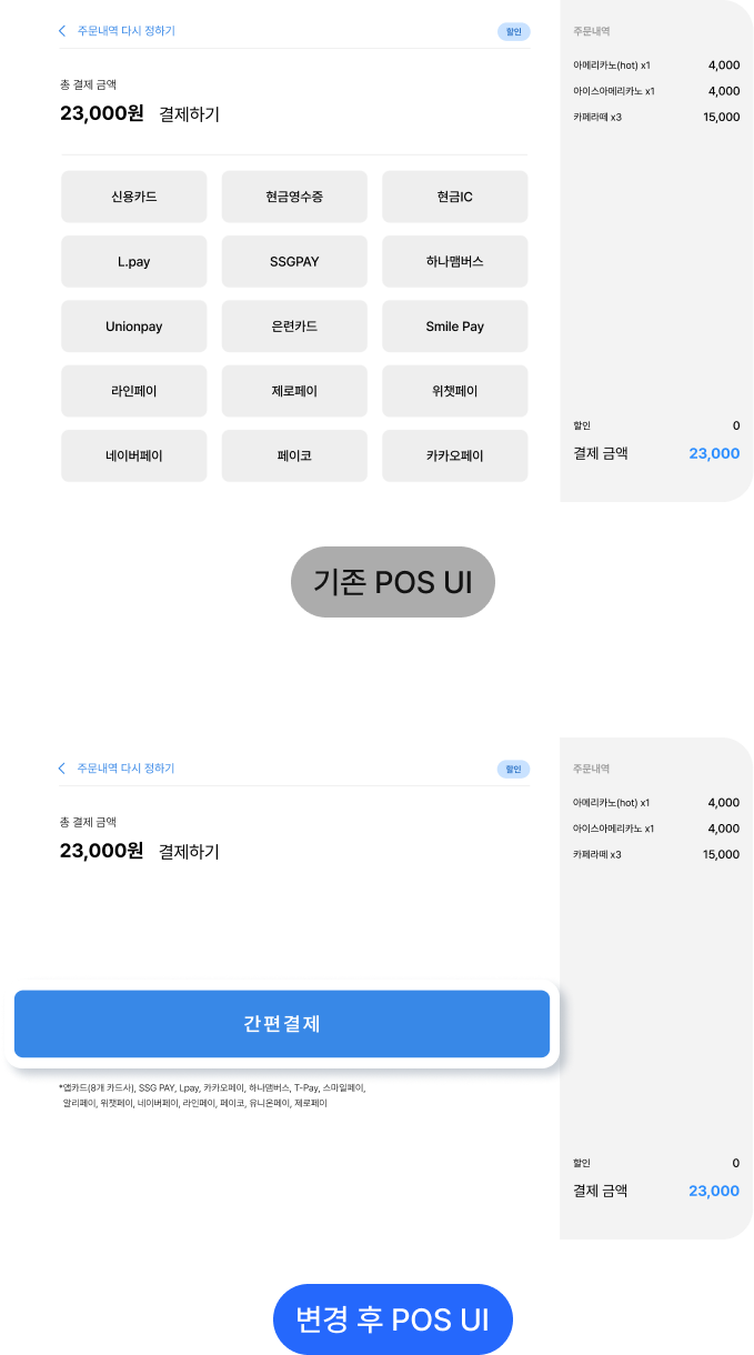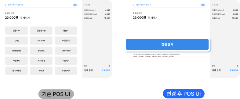 버튼 하나로 모든 간편 결제 서비스를 이용할 수 있는 사용자 친화적 UI 설계가 가능합니다.