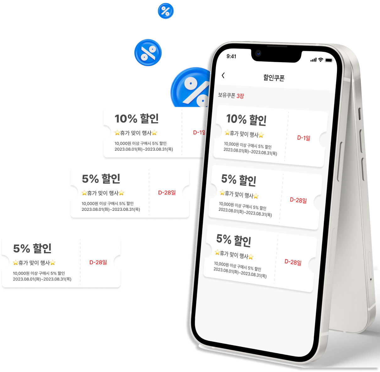 할인쿠폰을 앱을 통해 배포하고 구매로 이어지게 도와줍니다.